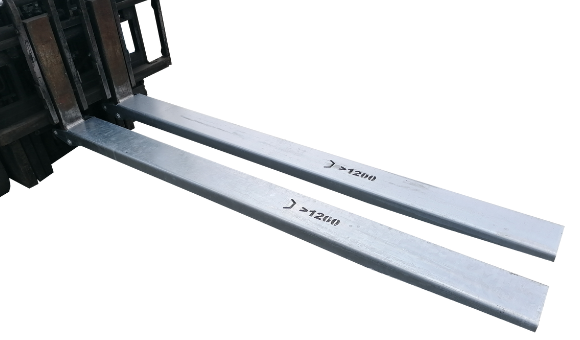 Paire de rallonges de fourches respectant la norme ISO 13284, en acier ép. 6 mm galvanisé à chaud au trempé spécialement adaptée à un usage fréquent et un stockage à l’extérieur.