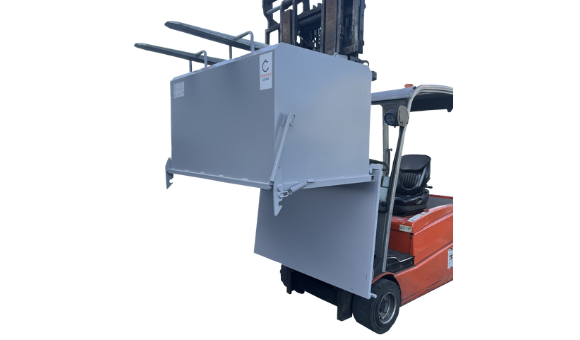 Benne cubique idéale pour déchets légers, encombrement réduit pour un maximum de volume.