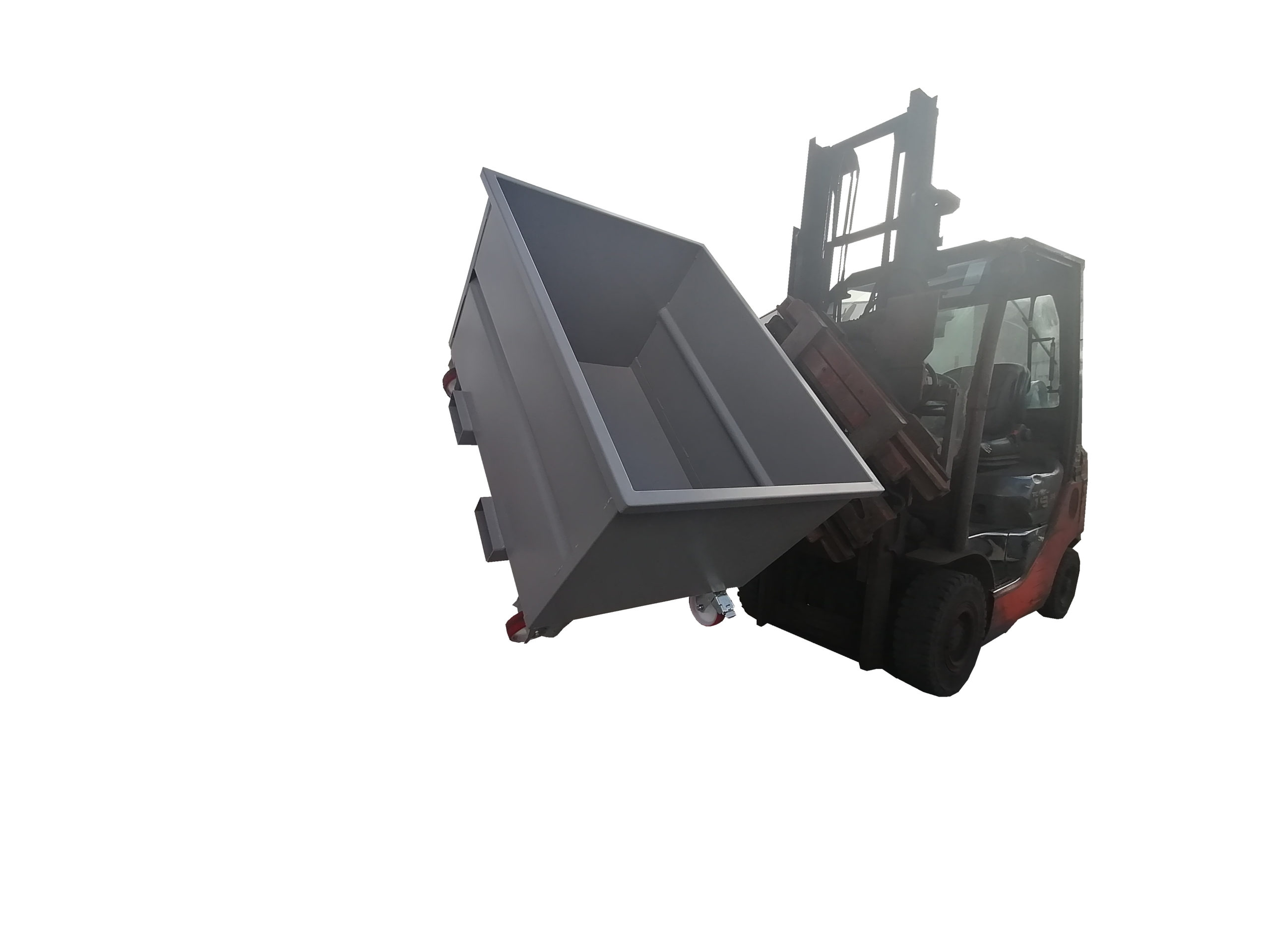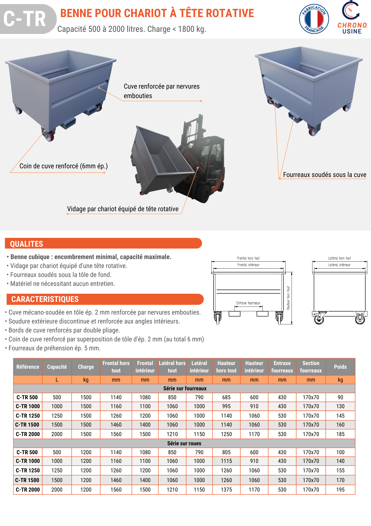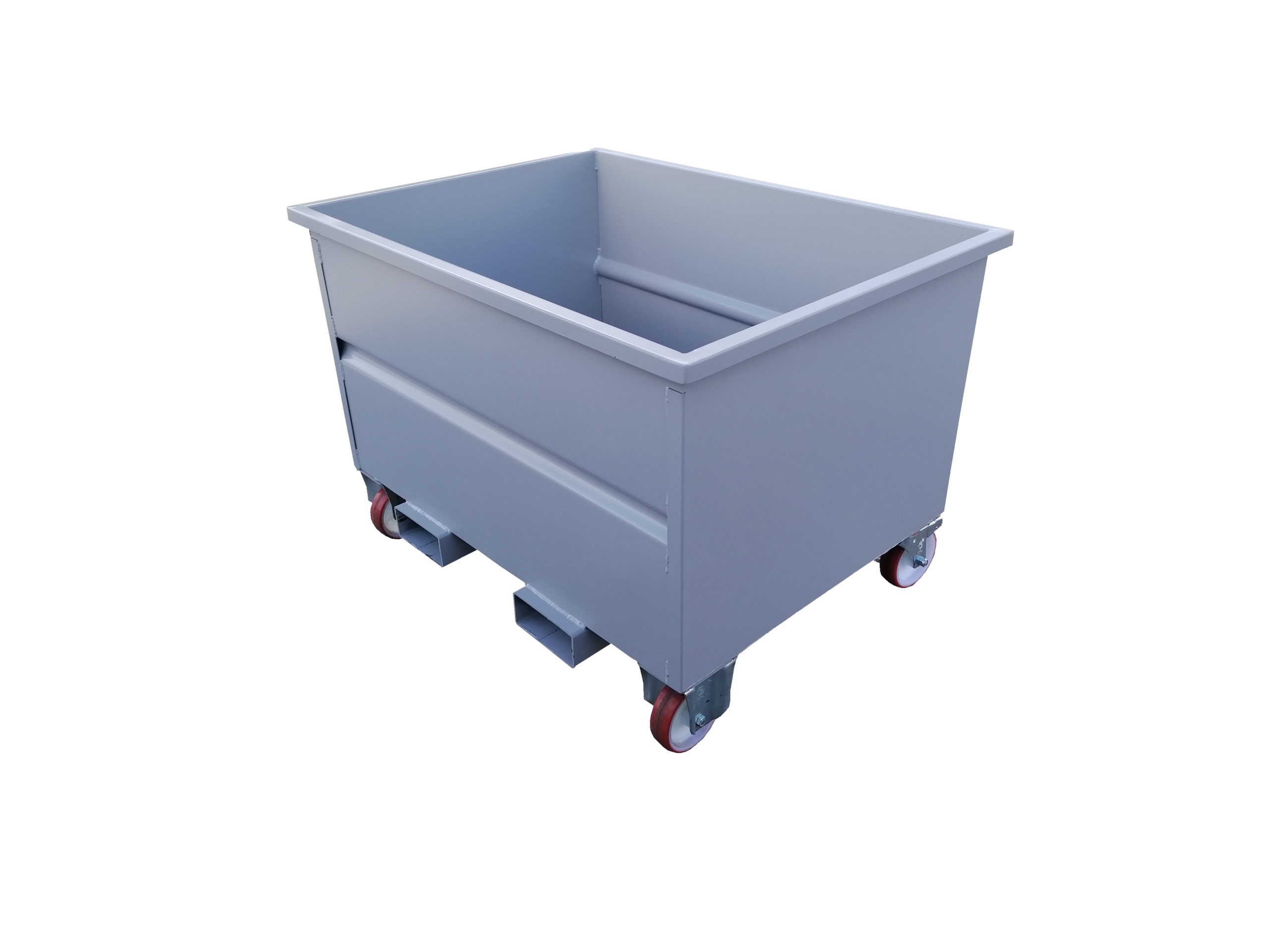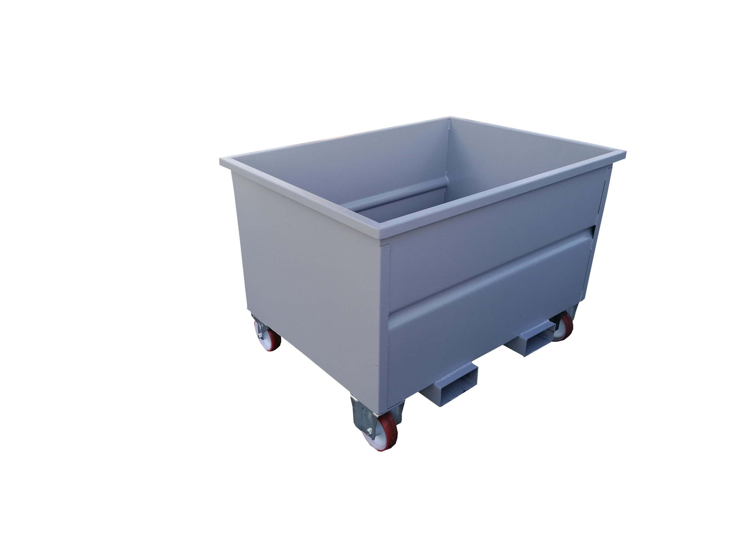 Benne cubique économique pour chariot à tête rotative avec fourreaux soudés sous la cuve.